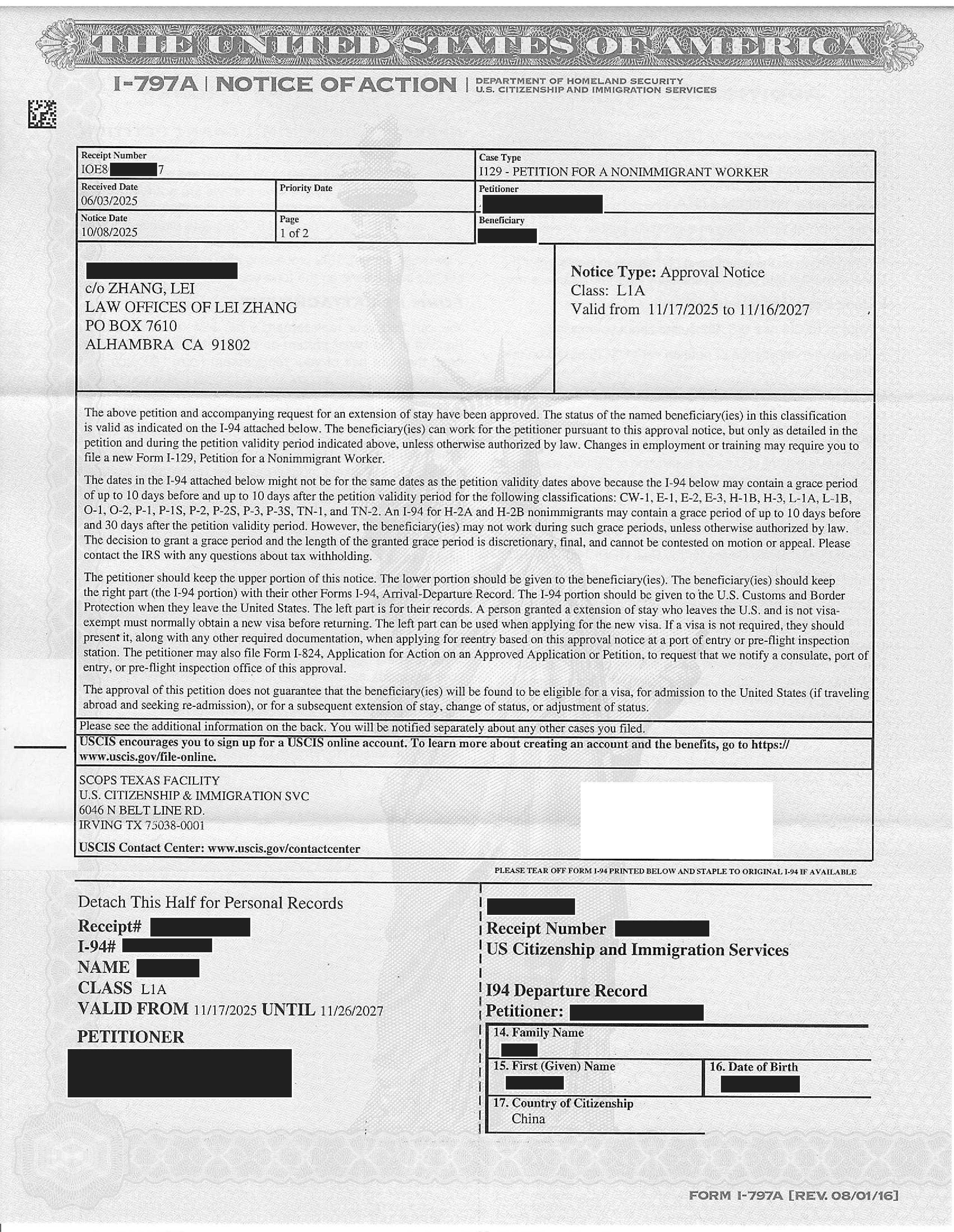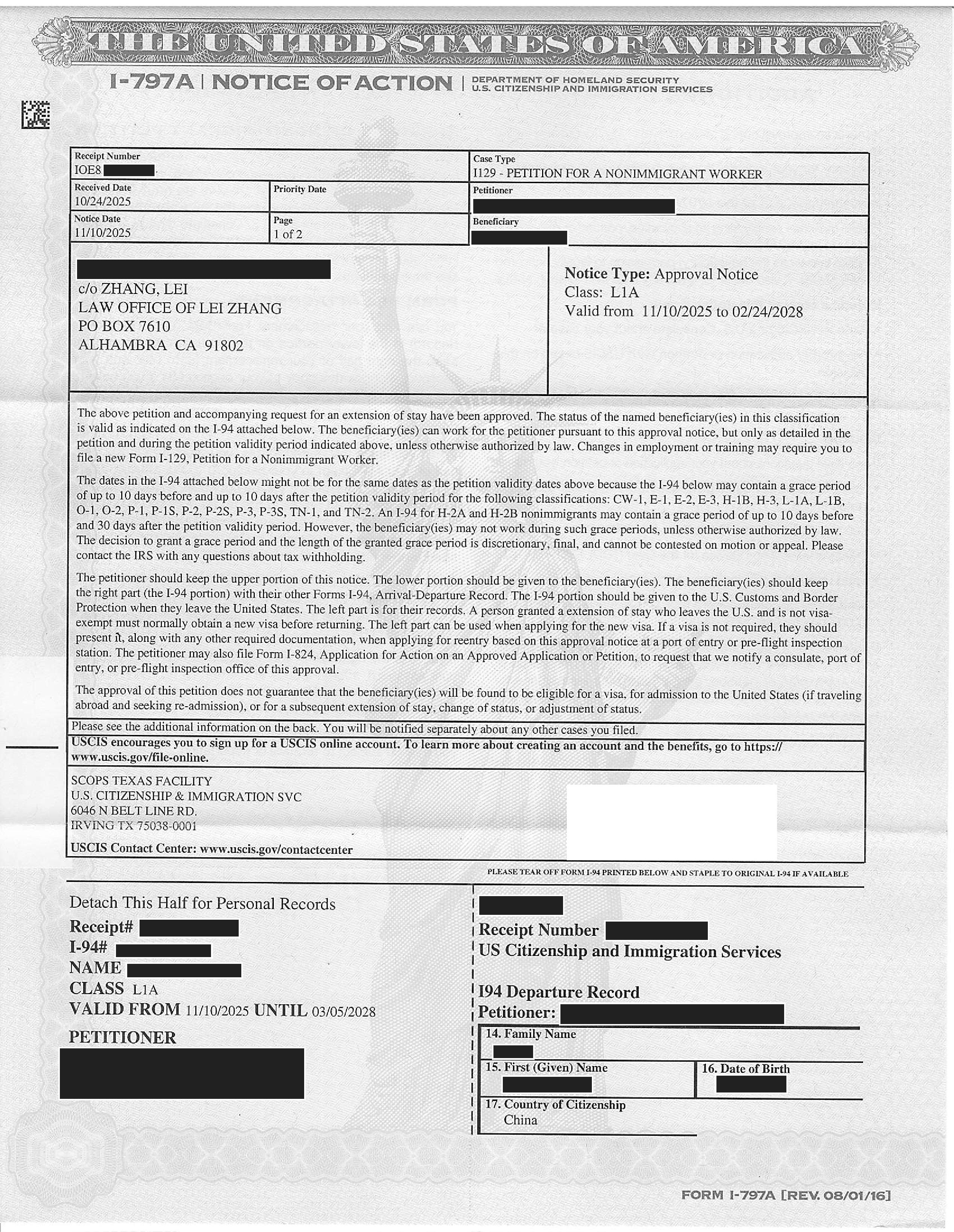 加州高科技跨国公司经理绿卡I-140申请获准(03/13/2025)