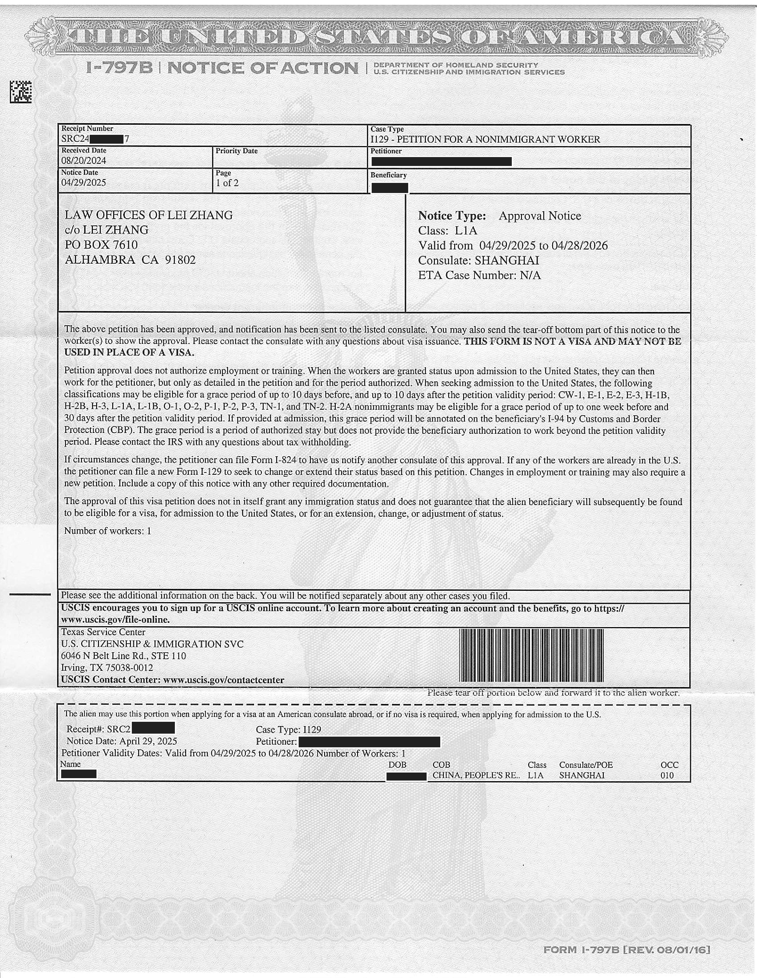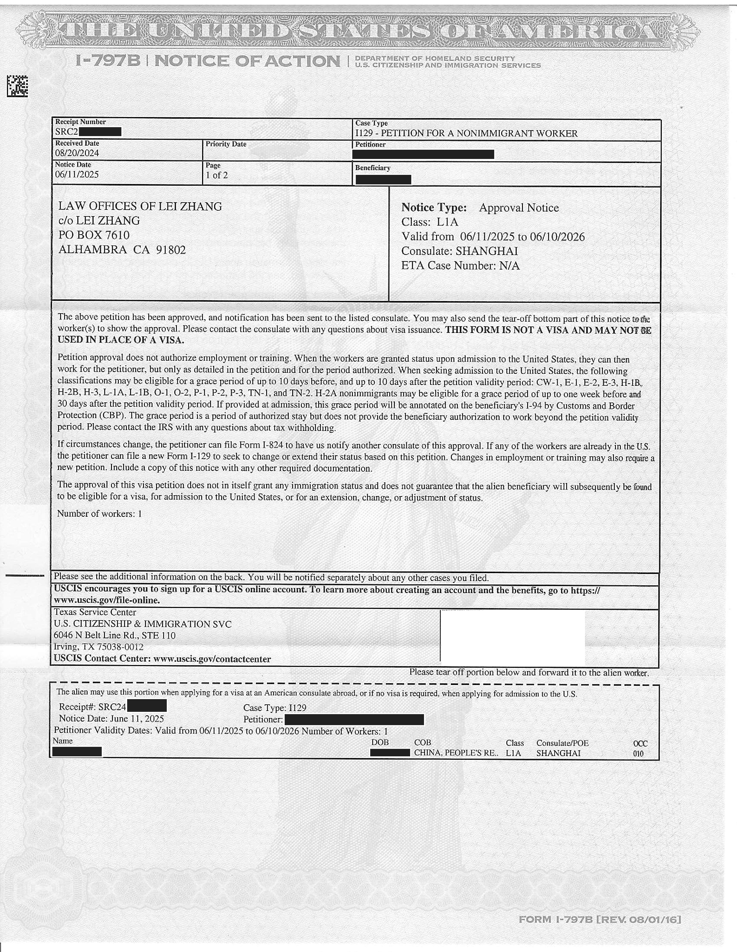 加州物流公司劳工移民I-140申请获准(05/29/2024)