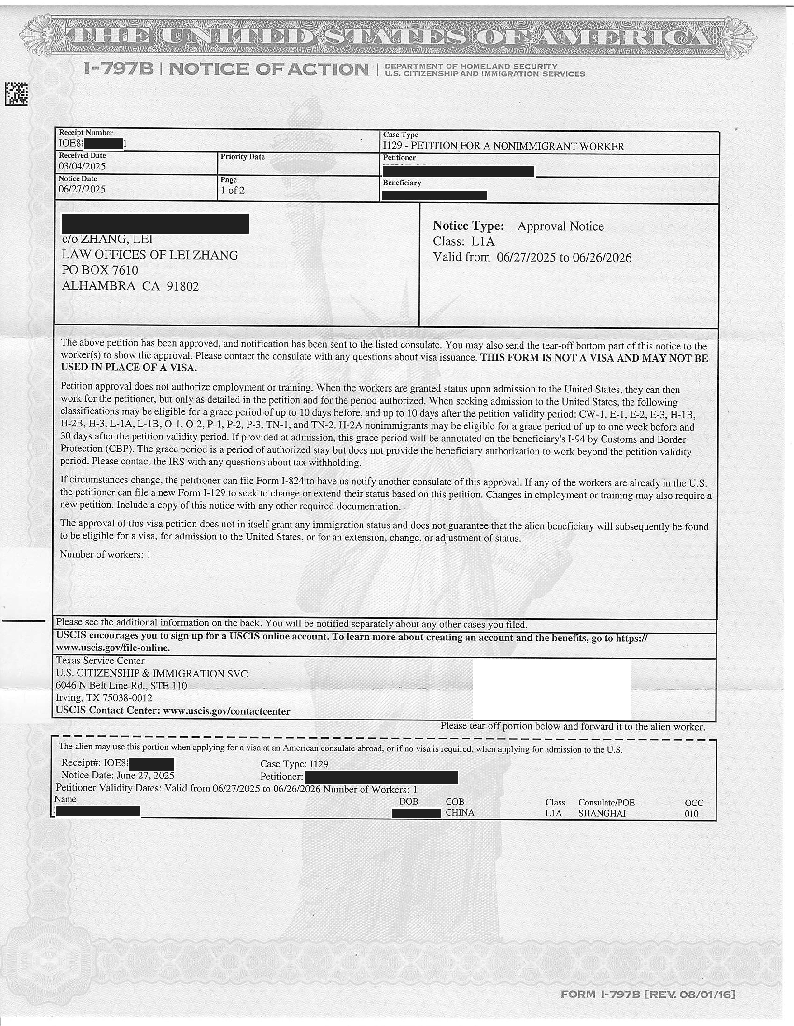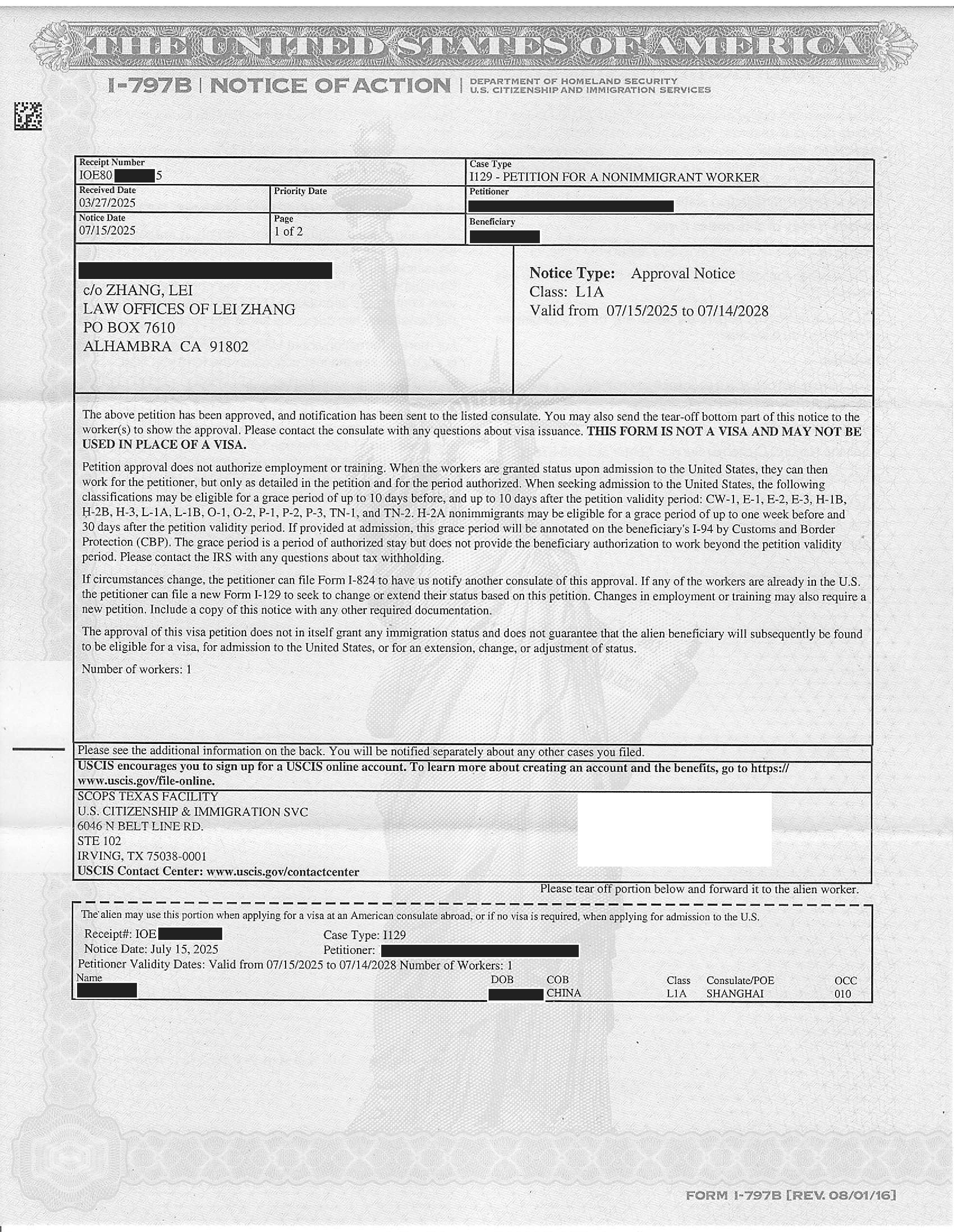 加州房产公司第3位三年L-1申请获准(07/23/2025)
