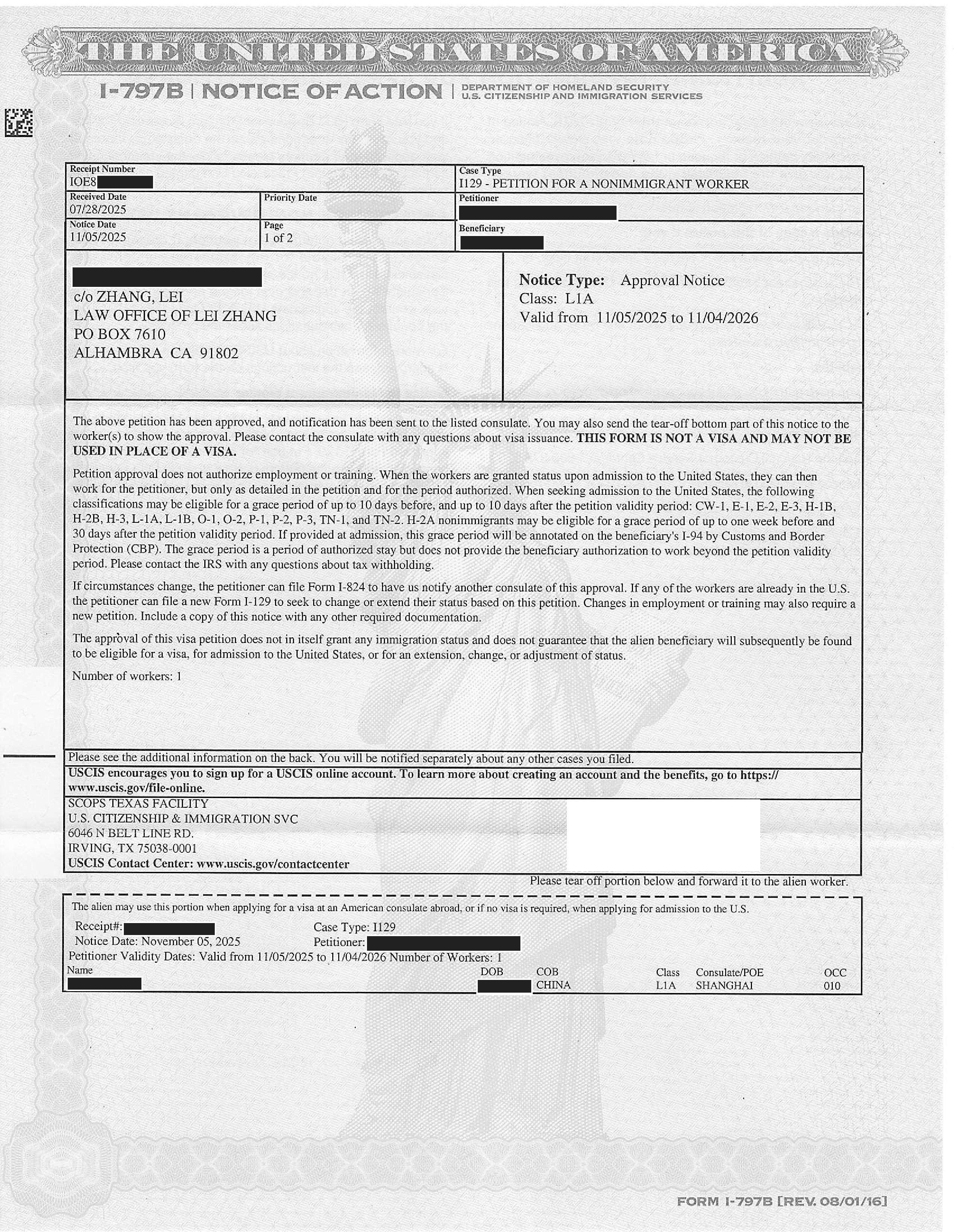上海进出口公司L-1申请获准(11/19/2024)