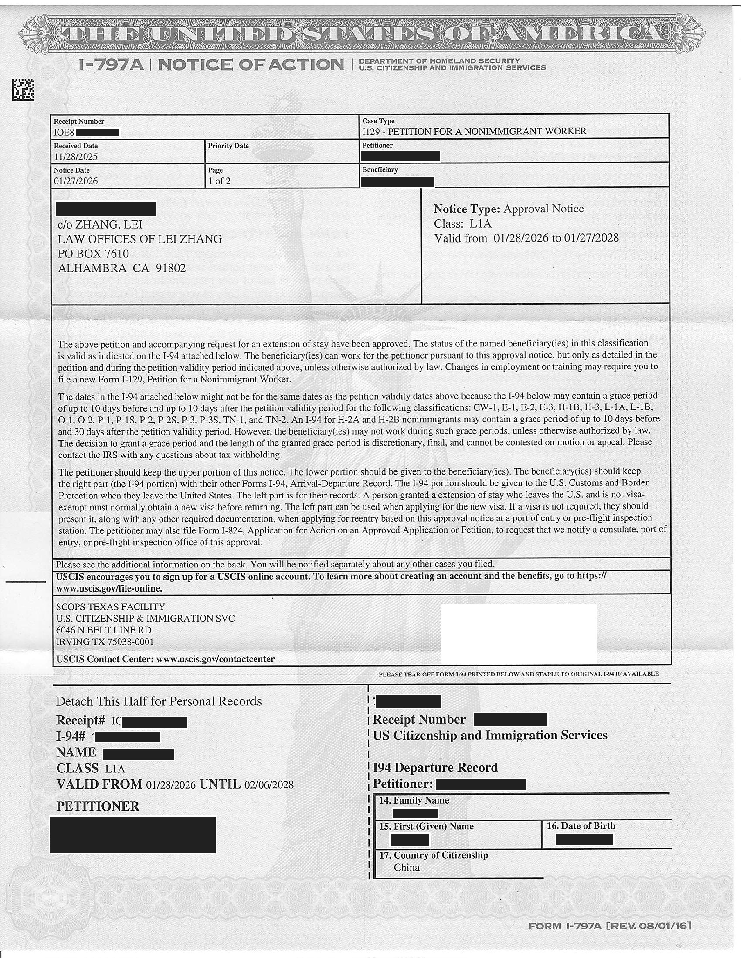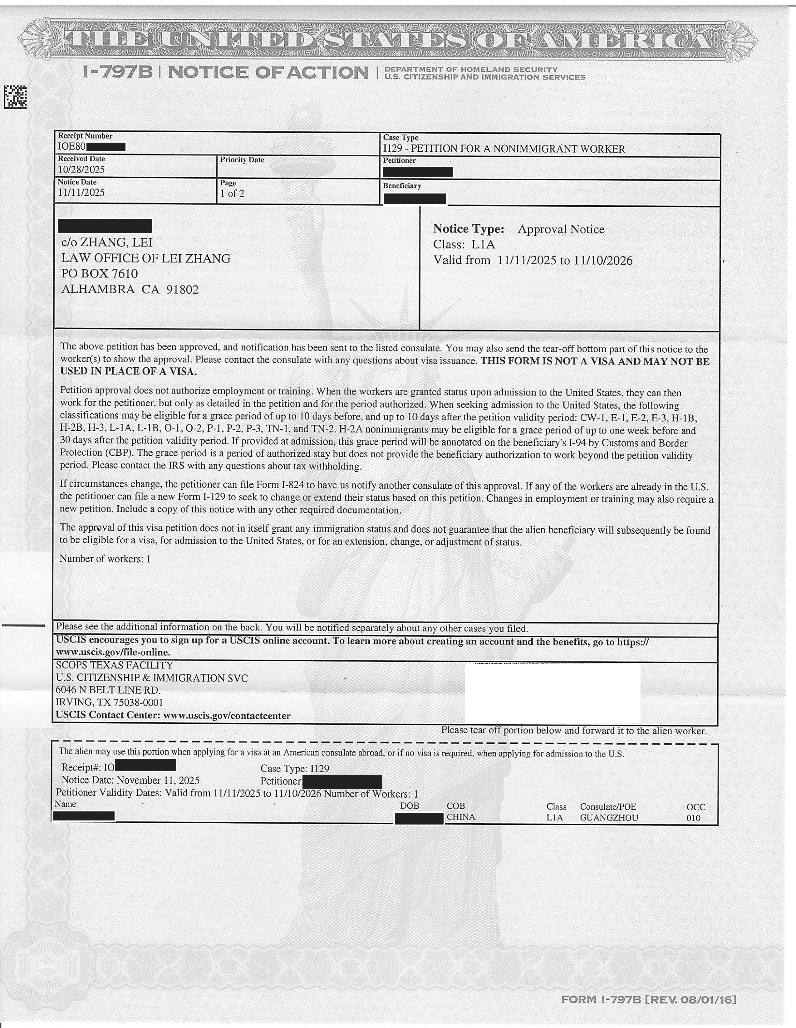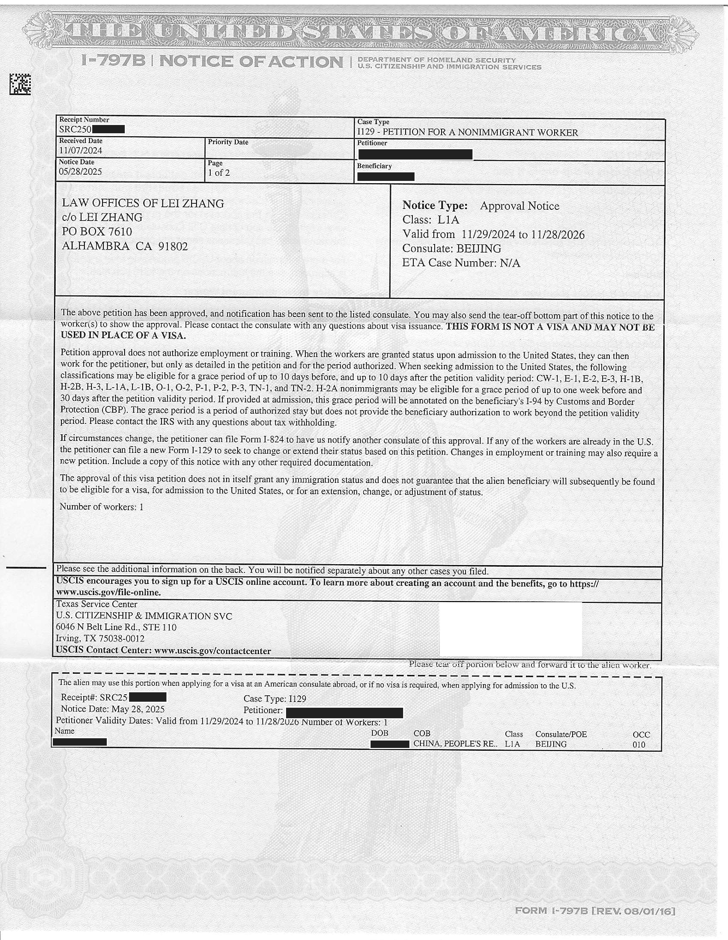 加州贸易公司L-1延期申请获准(11/26/2024)